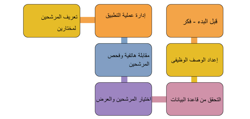 - القائمة المختصرة يعتمد وضع القائمة المختصرة على عدد المرشحين. عند تحديد من يقوم بالقوائم المختصرة، من المفيد وضع قائمة بالمعايير باستخدام مواصفات الوظيفة وملف تعريف الشخص. ويمكن بعد ذلك تصنيف كل تطبيق وفقا لهذه المعايير، أو يمكن استخدام نظام تسجيل بسيط..